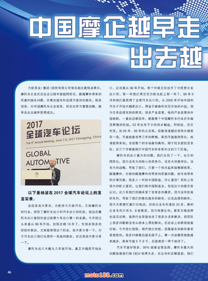 內(nèi)46 中國摩企越早走出去越早獲得成功