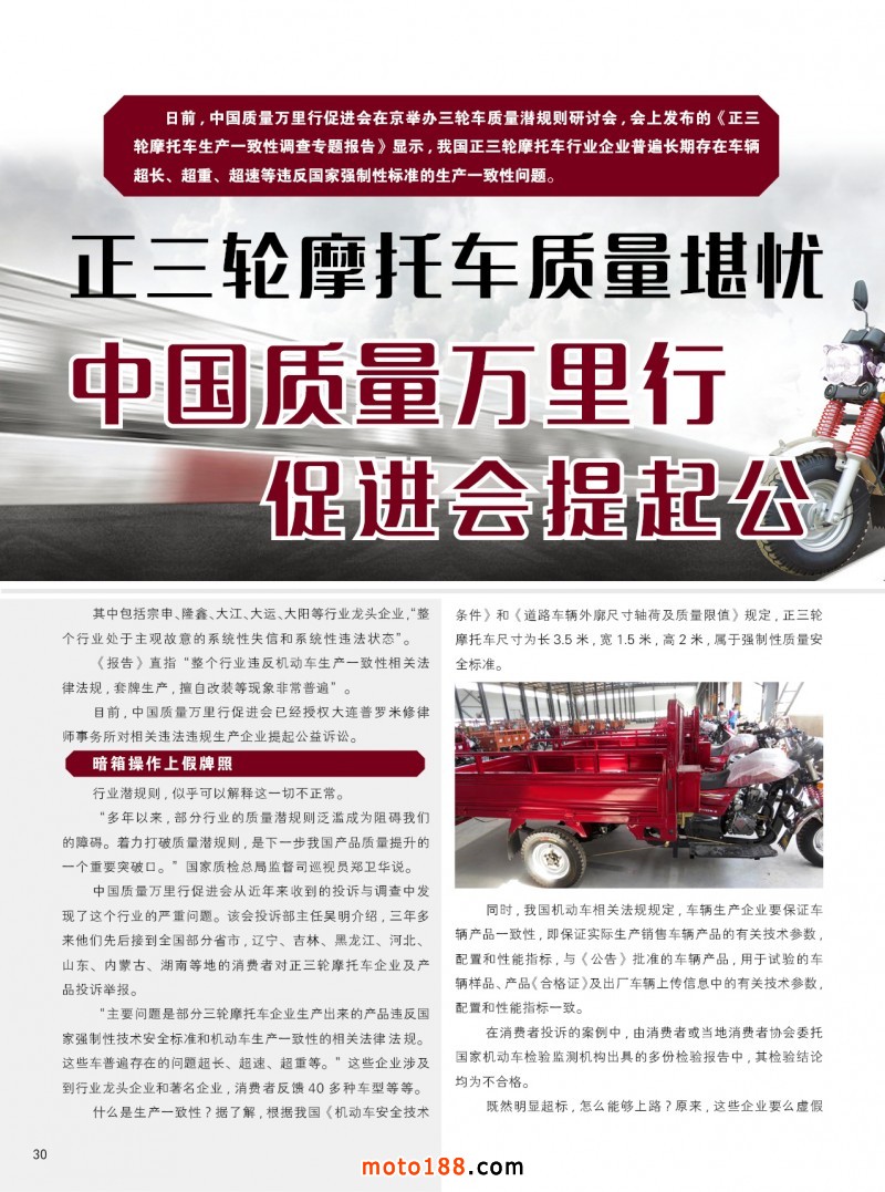 內30 正三輪摩托車質量堪憂,中國質量萬里行促進會提起公益訴訟