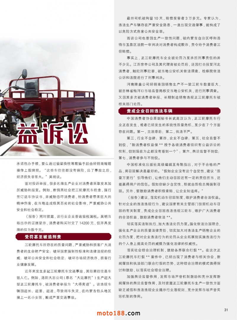 內31 正三輪摩托車質量堪憂,中國質量萬里行促進會提起公益訴訟