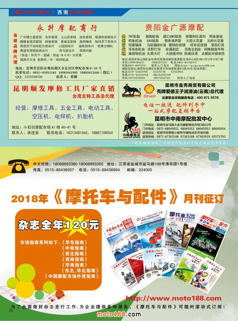 2018年已經到了,新的一年里,我們通過成功的轉型,為未來發展奠定了良好的基礎,外貿企業服務的應用軟件也正在測試。18年全年出刊12期雜志(含上、下半年會刊),2月份是春節,七月份是高溫季節,這兩個月份停止出刊,我們將更多的時間和精力用在微信運用和推廣及服務上,未來摩托車配件行業,我們通過微營銷《摩托車與配件》兩大品牌,為行業提供立體服務,不光為企業品牌宣傳還為行業企業營銷提供多渠道的服務,直白地說就是努力幫企業多掙錢,我們已經走上了這條道,我們堅定不移的走下去,同時有更好的服務的形式,我們也會告知企業,讓傳統的經營插上互聯網的翅膀,使中國制造一帶一路走向世界,這是我們的工作重點,也是我們雜志社的道義和責任,愿行業企業和我們攜手,共克時艱,共謀通達。