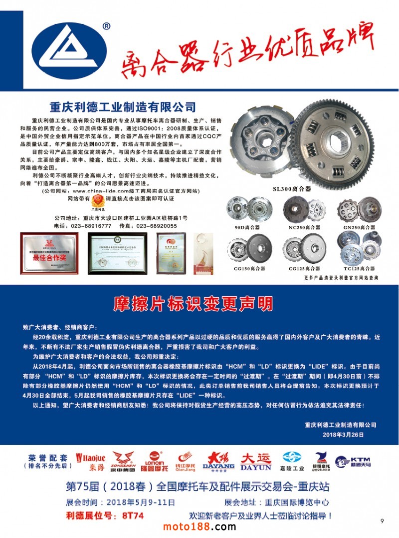 本期雜志將參加中汽的江門(mén)會(huì)展,并在大會(huì)上發(fā)放;我們的5月期雜志和全摩會(huì)會(huì)刊將在重慶春季全摩會(huì)上發(fā)行。目前廣告業(yè)務(wù)進(jìn)展順利,需要做宣傳的企業(yè)請(qǐng)速與我們聯(lián)絡(luò)。