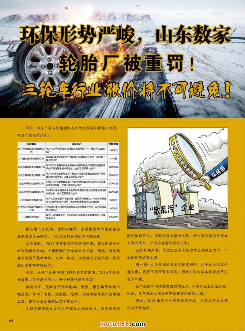 內64 環保形勢嚴峻,山東數家輪胎廠被重罰!三輪車行業漲價將不可避免!