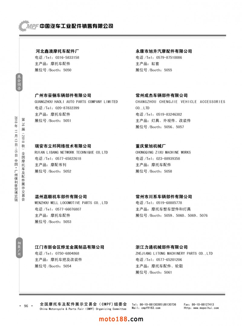 內96 第75屆(2018春)全國摩托車及配件展示交易會-重慶站參展企業信息