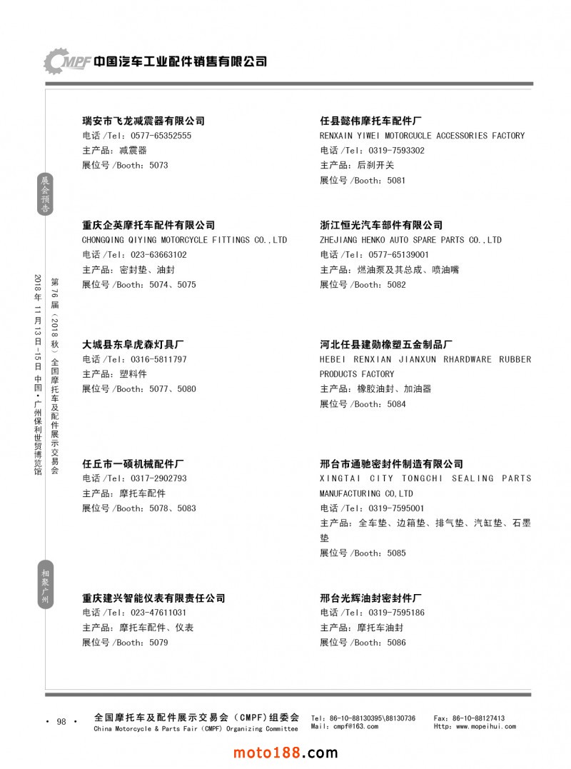 內98 第75屆(2018春)全國摩托車及配件展示交易會-重慶站參展企業信息