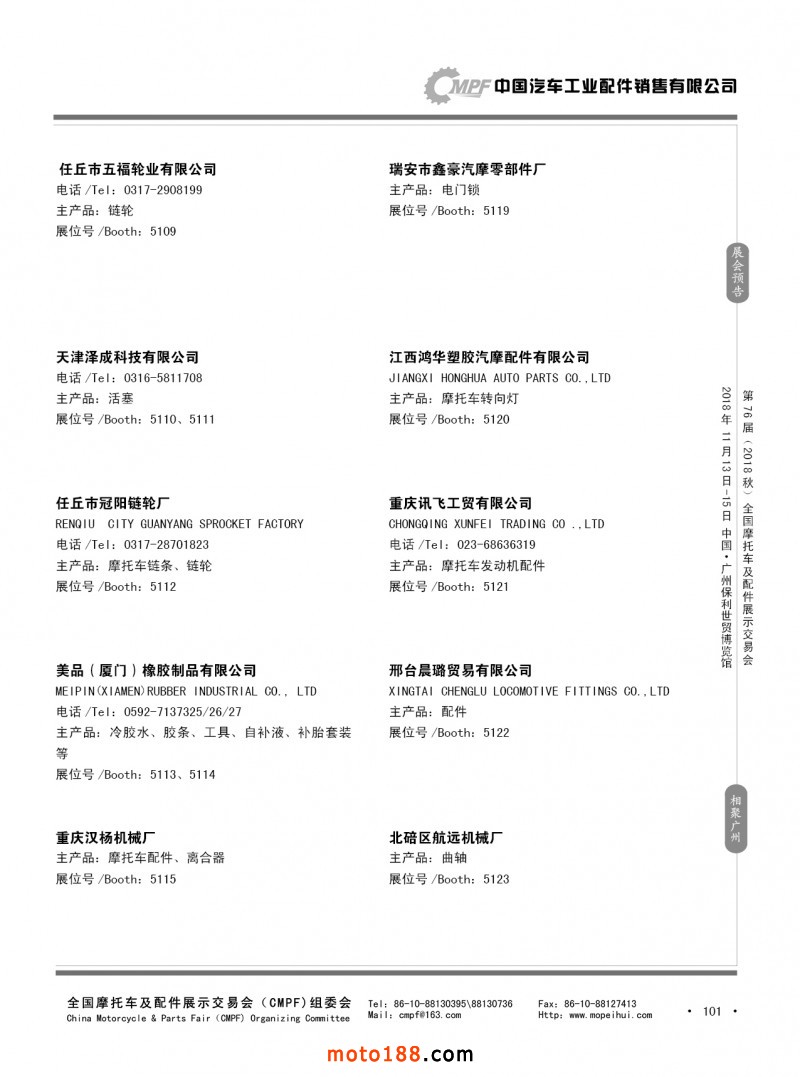 內101 第75屆(2018春)全國摩托車及配件展示交易會-重慶站參展企業信息