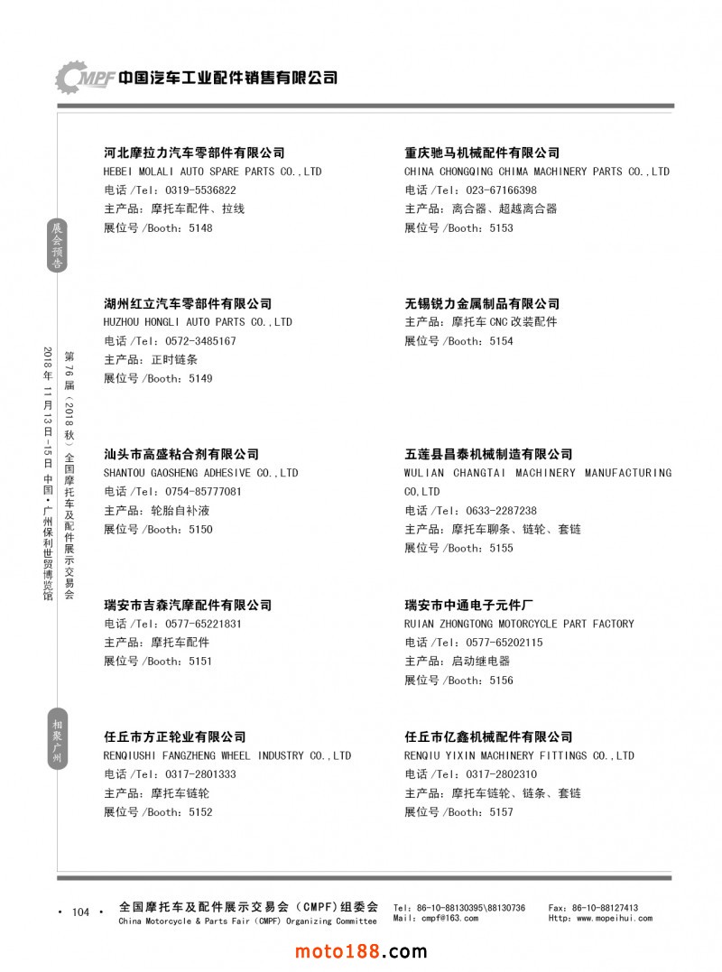 內104 第75屆(2018春)全國摩托車及配件展示交易會-重慶站參展企業信息