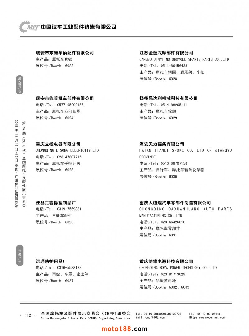 內112 第75屆(2018春)全國摩托車及配件展示交易會-重慶站參展企業信息