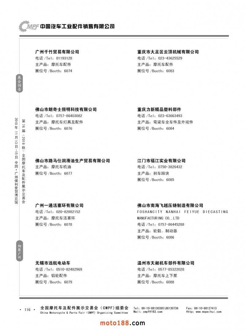 內(nèi)116 第75屆(2018春)全國摩托車及配件展示交易會-重慶站參展企業(yè)信息