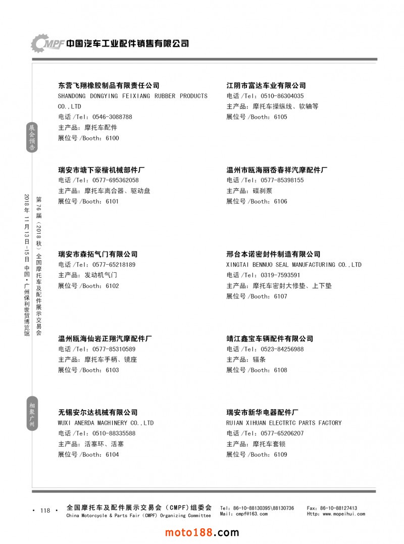 內(nèi)118 第75屆(2018春)全國摩托車及配件展示交易會-重慶站參展企業(yè)信息