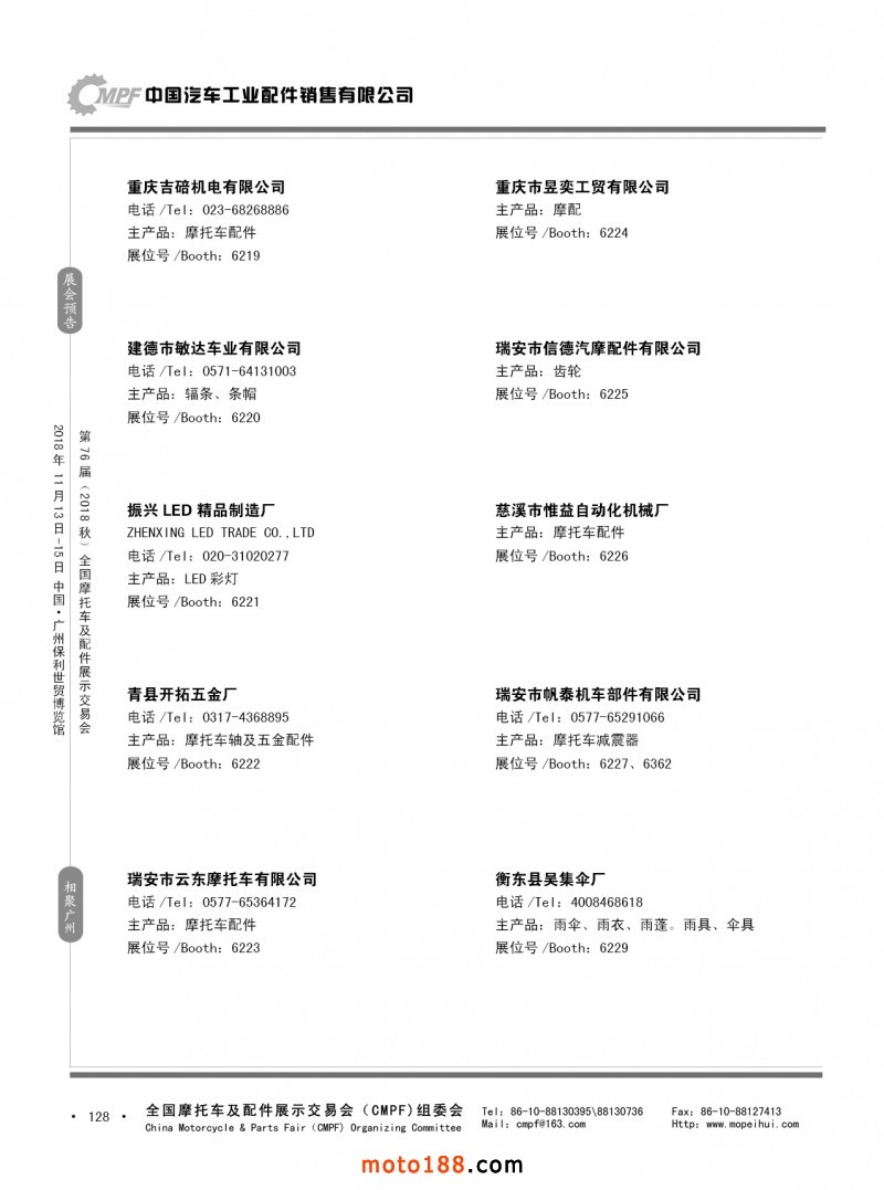 內(nèi)128 第75屆(2018春)全國(guó)摩托車(chē)及配件展示交易會(huì)-重慶站參展企業(yè)信息