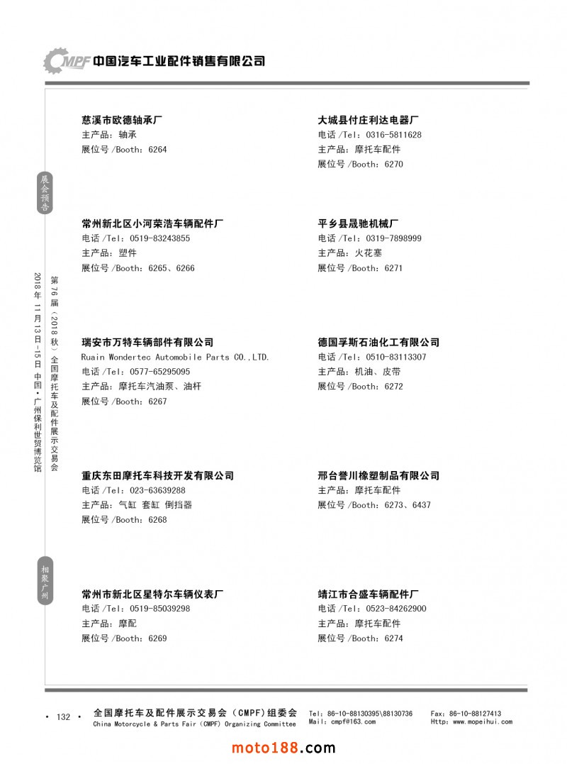 內(nèi)132 第75屆(2018春)全國摩托車及配件展示交易會-重慶站參展企業(yè)信息