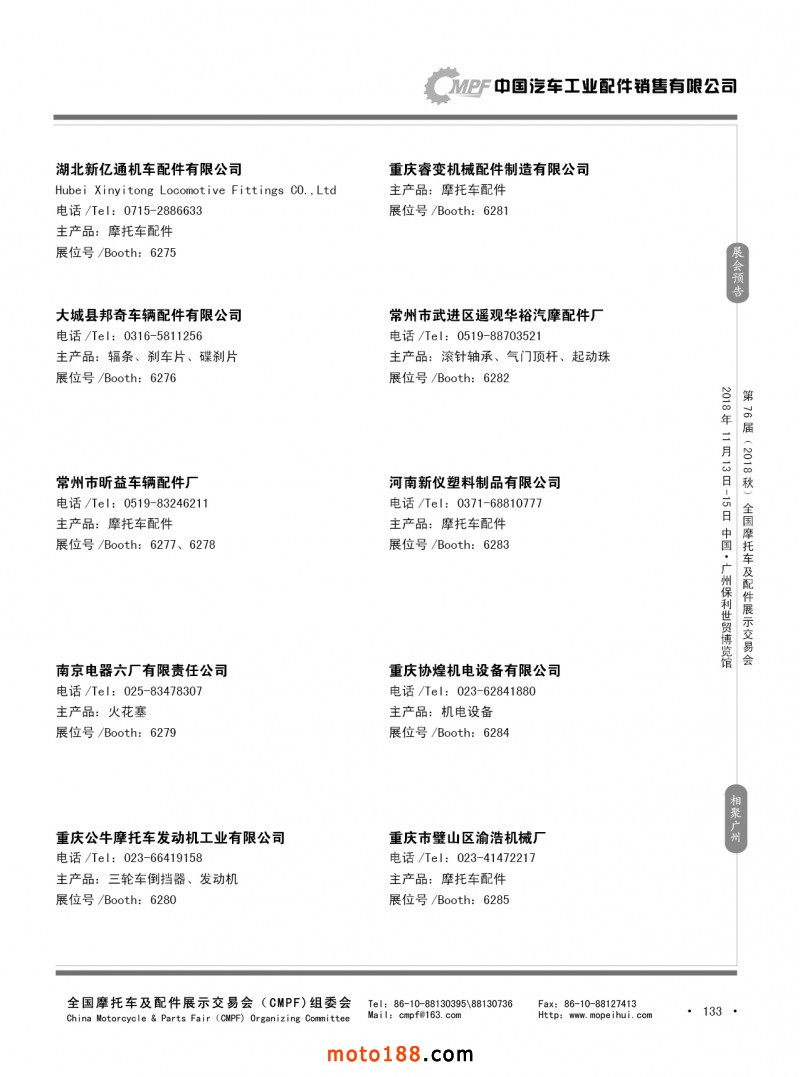 內133 第75屆(2018春)全國摩托車及配件展示交易會-重慶站參展企業信息