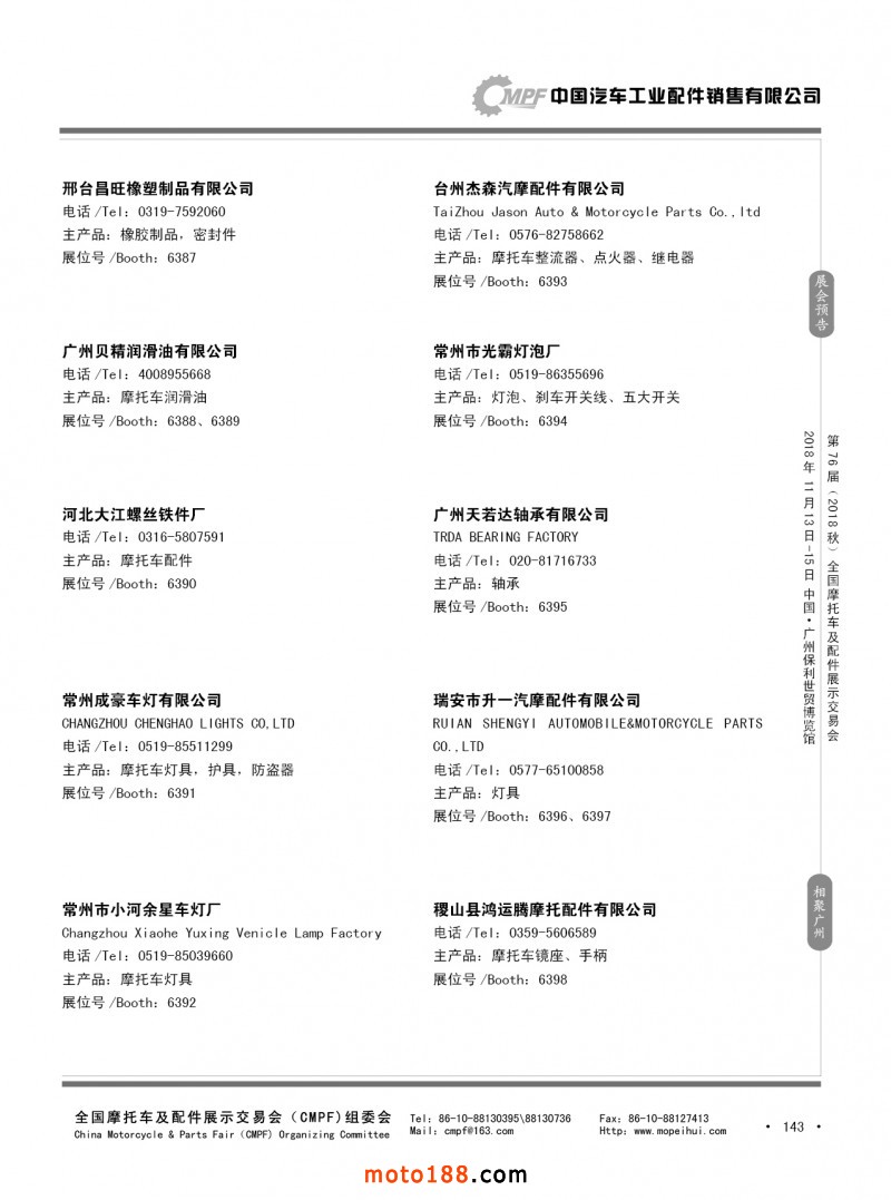 內143 第75屆(2018春)全國摩托車及配件展示交易會-重慶站參展企業信息