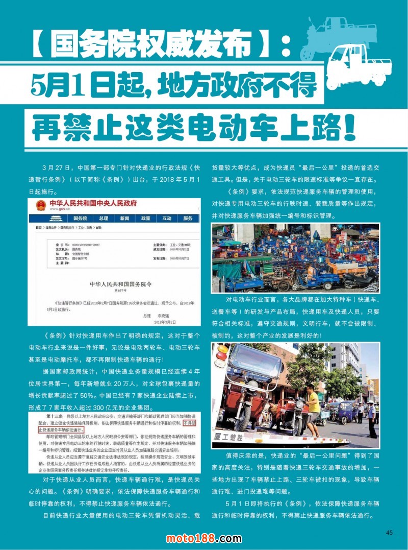 2018.5月《摩托車(chē)/電動(dòng)車(chē)與配件》雜志,歡迎大家閱讀日期:2018-04-25 點(diǎn)擊:1896 查看原圖 全部展開(kāi)![]() ![]() ![]() 內(nèi)45 【國(guó)務(wù)院權(quán)威發(fā)布】:5月1日起,地方政府不得再禁止這類(lèi) 電動(dòng)車(chē)上路!