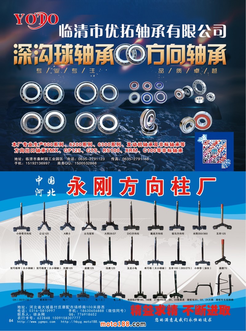 2018.5月《摩托車/電動(dòng)車與配件》雜志,歡迎大家閱讀日期:2018-04-25 點(diǎn)擊:1896 查看原圖 全部展開![]() ![]() ![]() 內(nèi) 84 臨清市優(yōu)拓軸承有限公司