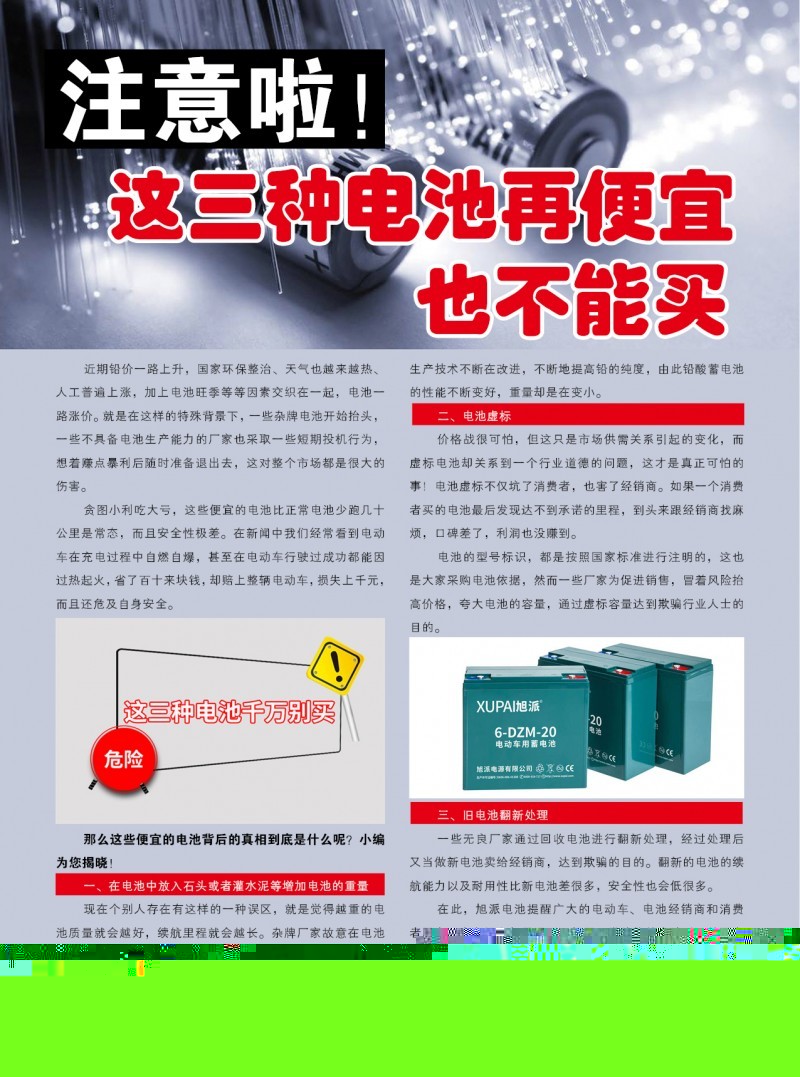 2018.10月《摩托車/電動(dòng)車與配件》雜志,歡迎大家閱讀日期:2018-09-28 點(diǎn)擊:1540 查看原圖 全部展開![]() ![]() ![]() 內(nèi)42 注意啦!這三種電池再便宜也不能買