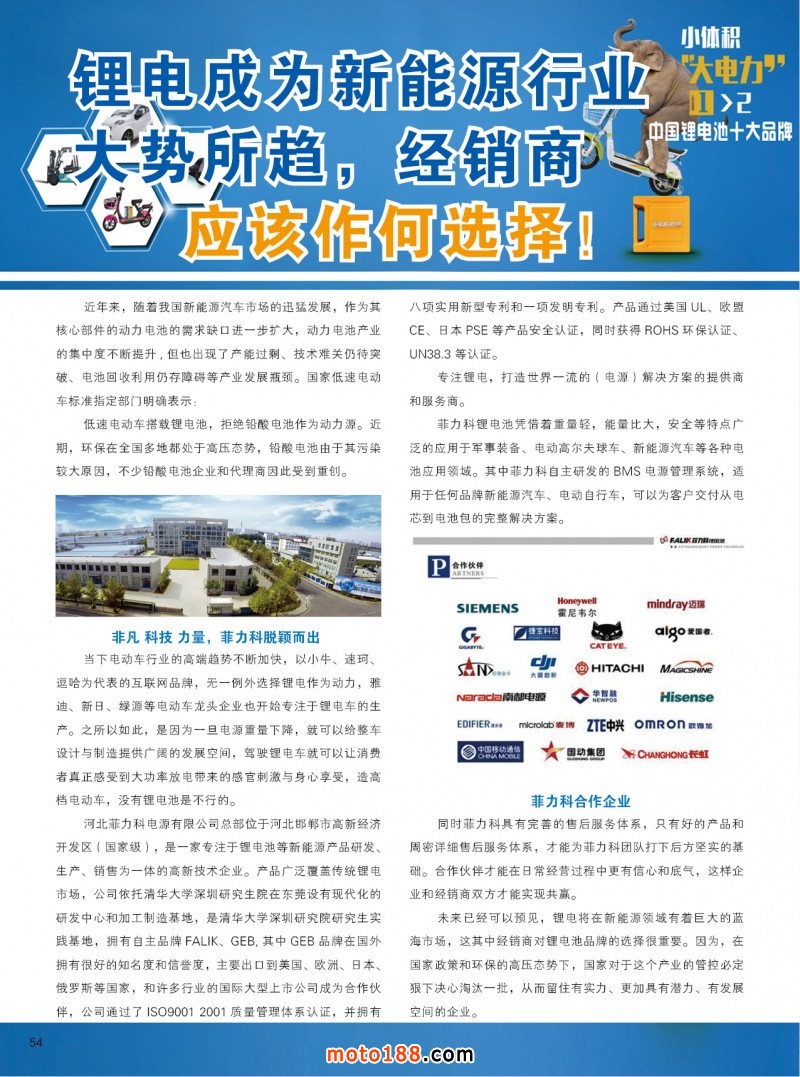 2018.10月《摩托車/電動車與配件》雜志,歡迎大家閱讀日期:2018-09-28 點擊:1538 查看原圖 全部展開![]() ![]() ![]() 內54 鋰電成為新能源行業(yè)大勢所趨,經銷商應該作何選擇!