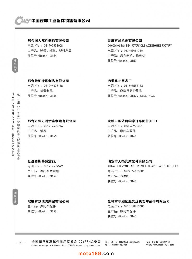 內(nèi)98 第76屆(2018秋)全國(guó)摩托車及配件展示交易會(huì)-廣州站參展企業(yè)信息