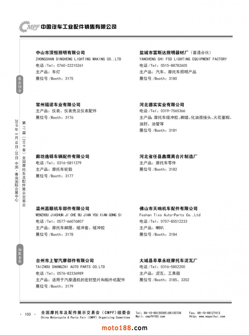 內(nèi)100 第76屆(2018秋)全國(guó)摩托車及配件展示交易會(huì)-廣州站參展企業(yè)信息