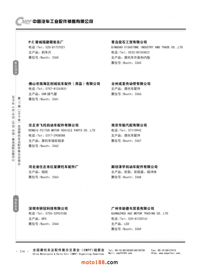 內(nèi)113 第76屆(2018秋)全國摩托車及配件展示交易會(huì)-廣州站參展企業(yè)信息