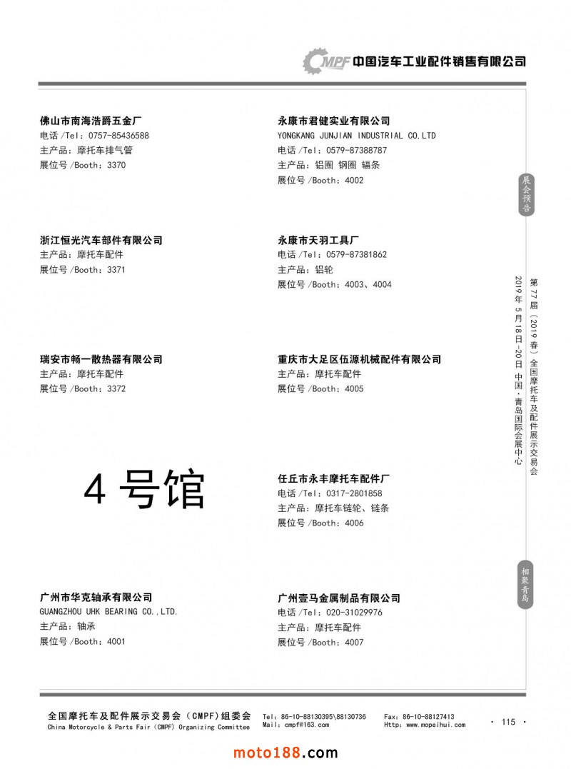 內115 第76屆(2018秋)全國摩托車及配件展示交易會-廣州站參展企業信息