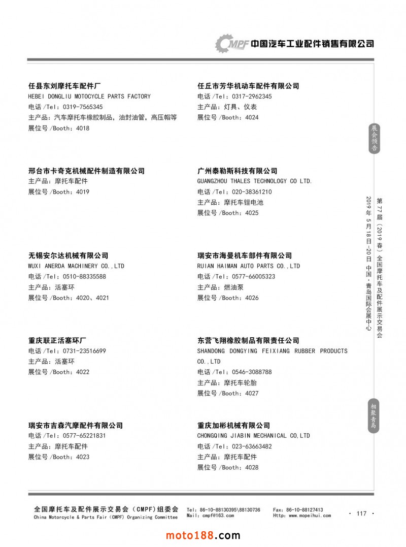 內117 第76屆(2018秋)全國摩托車及配件展示交易會-廣州站參展企業信息