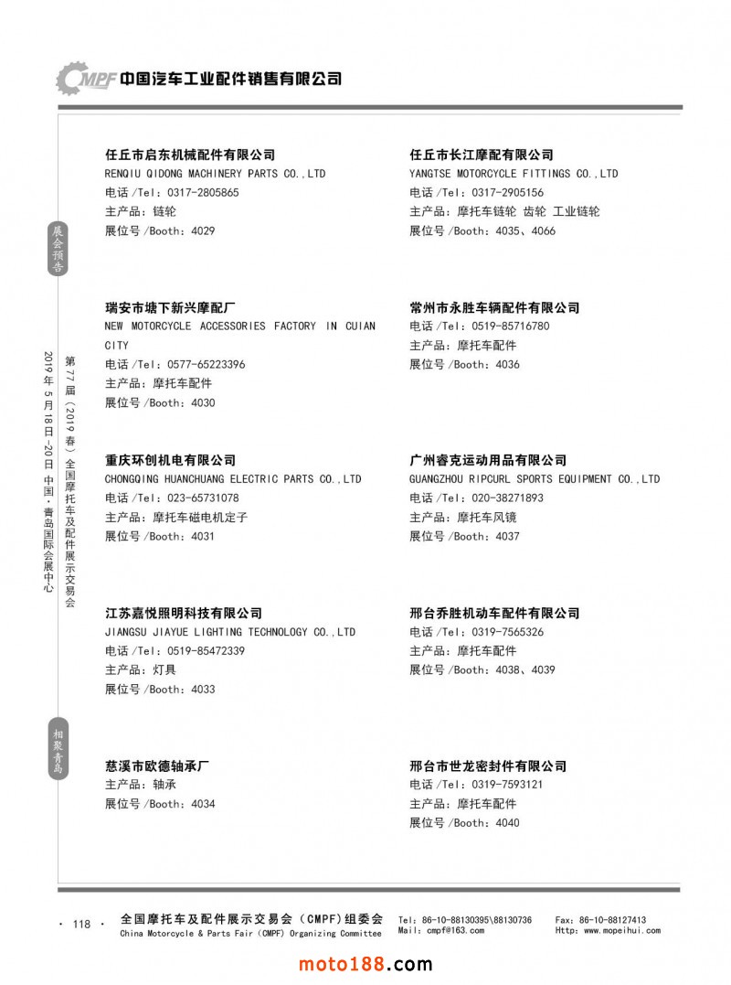 內(nèi)118 第76屆(2018秋)全國摩托車及配件展示交易會-廣州站參展企業(yè)信息