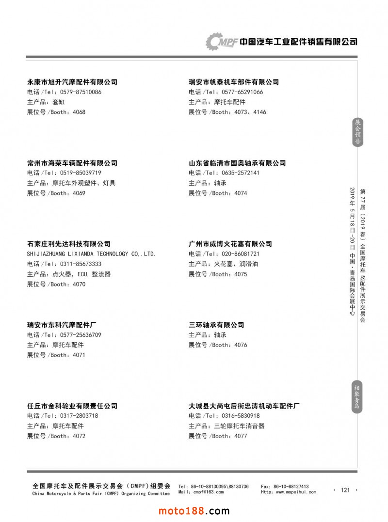 內(nèi)121 第76屆(2018秋)全國摩托車及配件展示交易會-廣州站參展企業(yè)信息