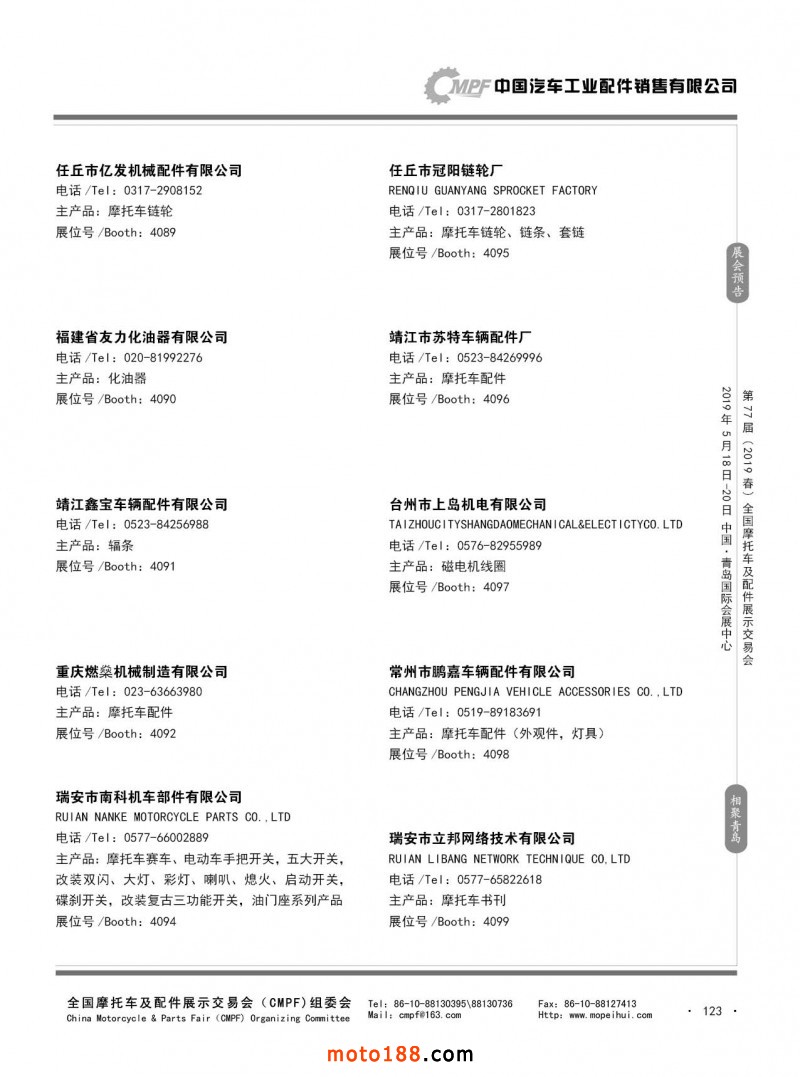 內(nèi)123 第76屆(2018秋)全國(guó)摩托車及配件展示交易會(huì)-廣州站參展企業(yè)信息