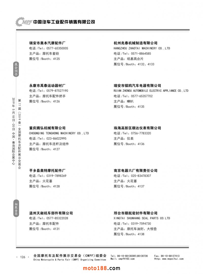 內126 第76屆(2018秋)全國摩托車及配件展示交易會-廣州站參展企業信息