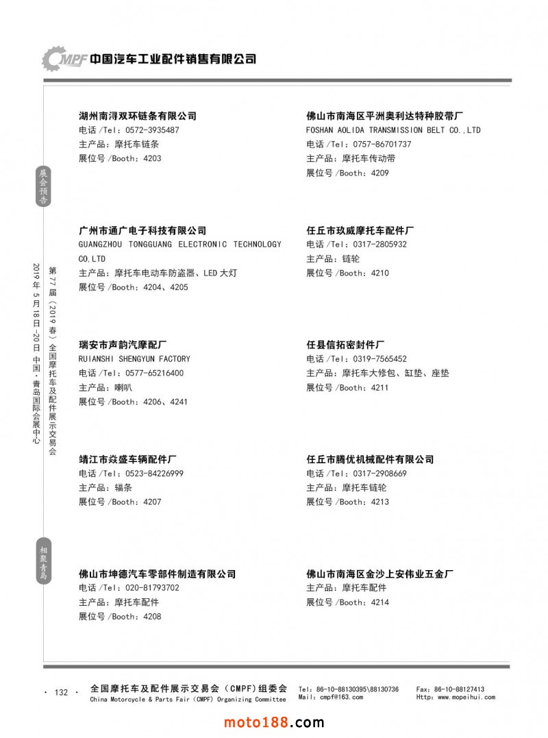內(nèi)132 第76屆(2018秋)全國摩托車及配件展示交易會-廣州站參展企業(yè)信息