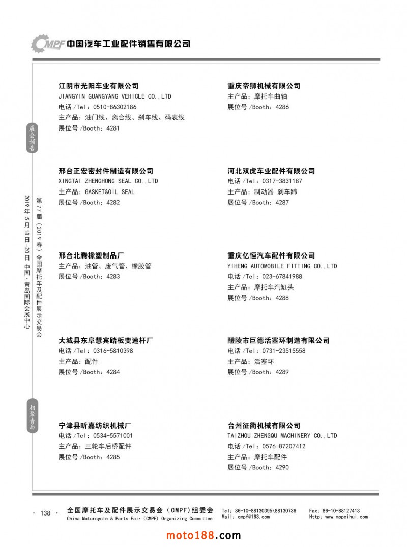 內(nèi)138 第76屆(2018秋)全國摩托車及配件展示交易會(huì)-廣州站參展企業(yè)信息