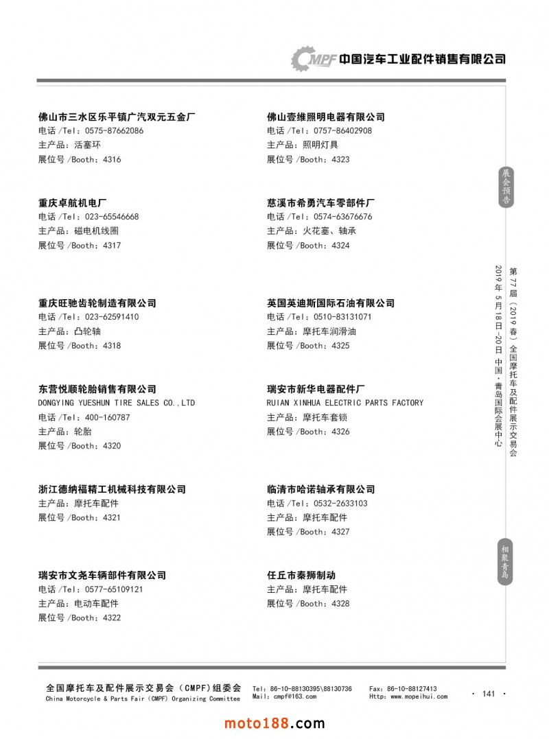 內141 第76屆(2018秋)全國摩托車及配件展示交易會-廣州站參展企業信息