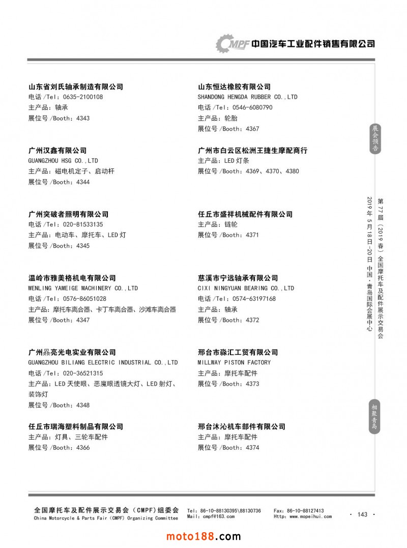 內143 第76屆(2018秋)全國摩托車及配件展示交易會-廣州站參展企業信息