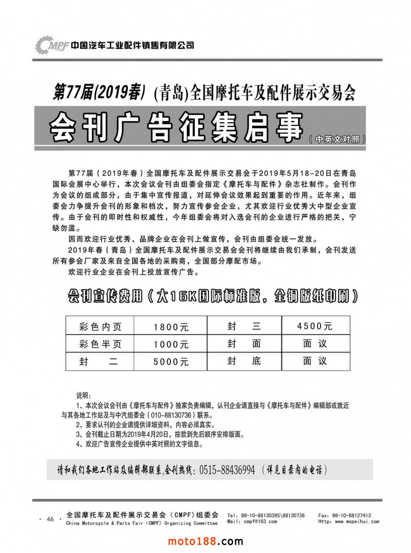 內46 第77屆(2019春)全國摩托車及配件展示交易會-青島站會刊征集啟事