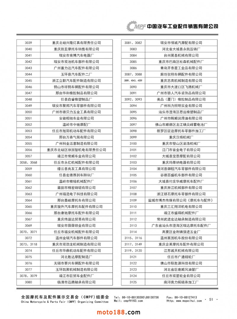 內(nèi)51 第76屆(2018秋)全國摩托車及配件展示交易會(huì)-廣州站參展單位名錄第76屆(2018秋)全國摩托車及配件展示交易會(huì)-廣州站參展單位名錄