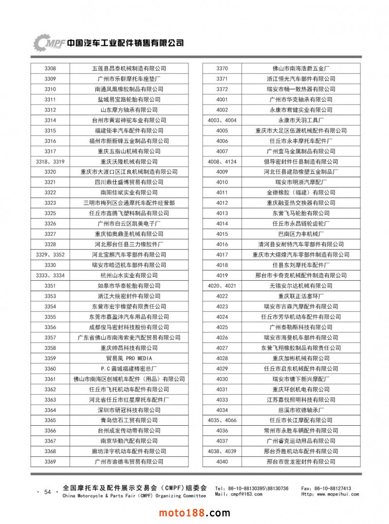 內54 第76屆(2018秋)全國摩托車及配件展示交易會-廣州站參展單位名錄第76屆(2018秋)全國摩托車及配件展示交易會-廣州站參展單位名錄