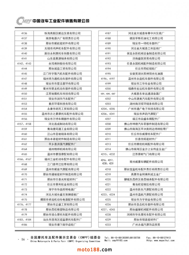 內(nèi)56 第76屆(2018秋)全國摩托車及配件展示交易會-廣州站參展單位名錄第76屆(2018秋)全國摩托車及配件展示交易會-廣州站參展單位名錄