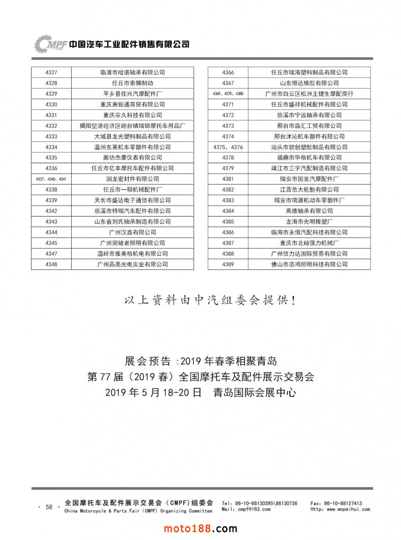 內58 第76屆(2018秋)全國摩托車及配件展示交易會-廣州站參展單位名錄第76屆(2018秋)全國摩托車及配件展示交易會-廣州站參展單位名錄