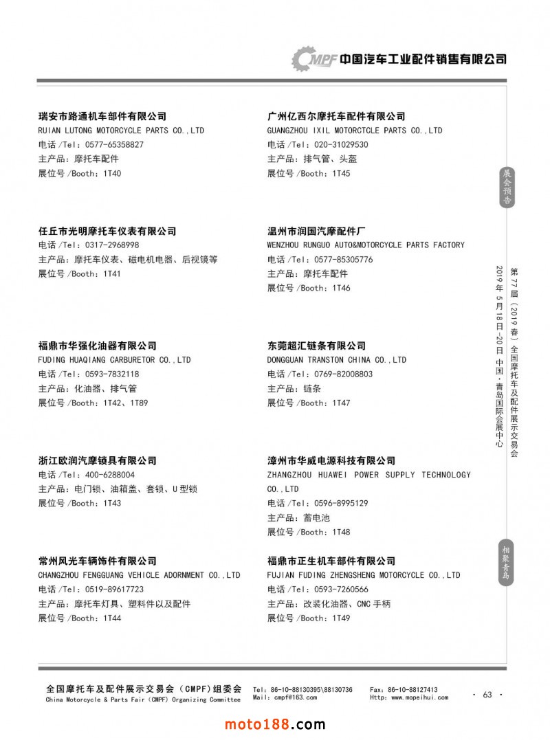 內(nèi)63 第76屆(2018秋)全國摩托車及配件展示交易會-廣州站參展企業(yè)信息