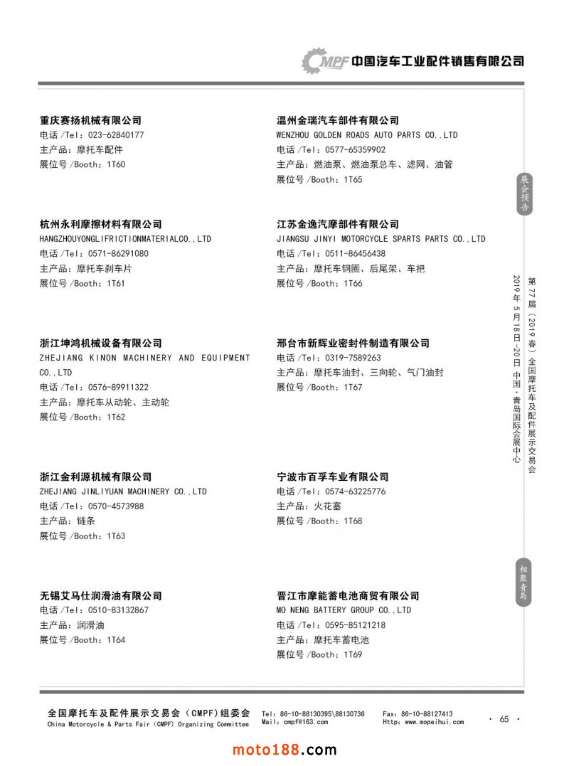 內65 第76屆(2018秋)全國摩托車及配件展示交易會-廣州站參展企業信息