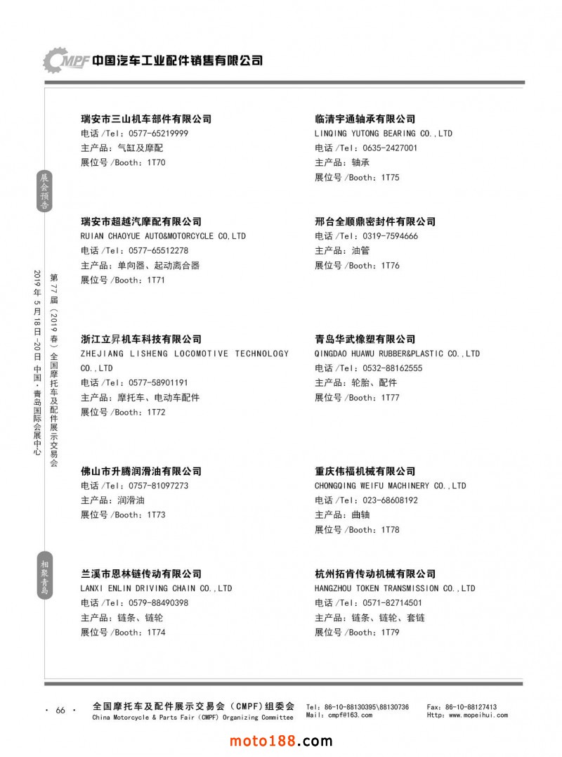 內66 第76屆(2018秋)全國摩托車及配件展示交易會-廣州站參展企業信息