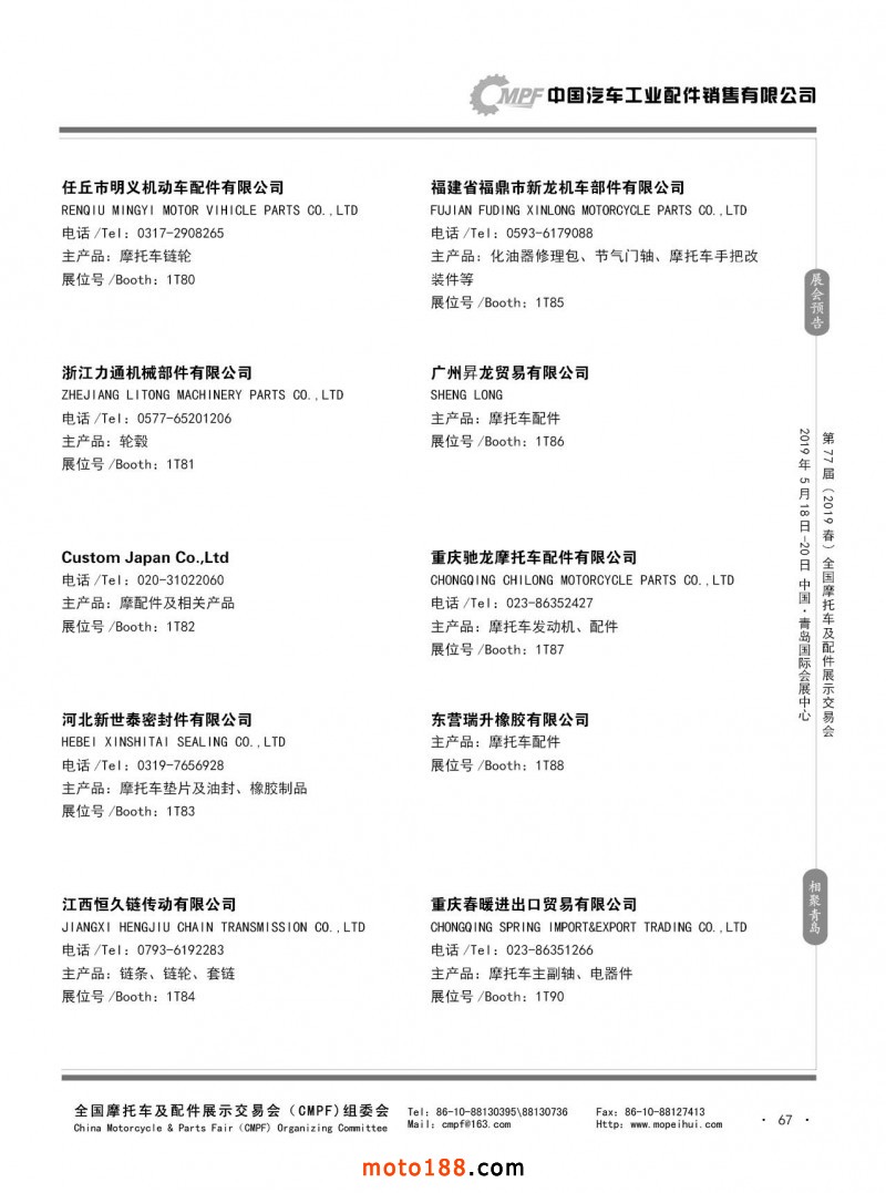 內67 第76屆(2018秋)全國摩托車及配件展示交易會-廣州站參展企業信息
