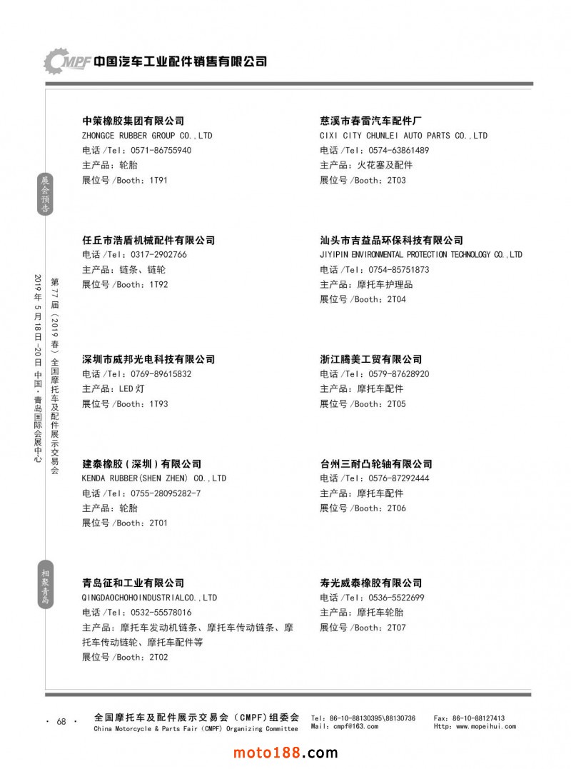 內(nèi)68 第76屆(2018秋)全國摩托車及配件展示交易會-廣州站參展企業(yè)信息