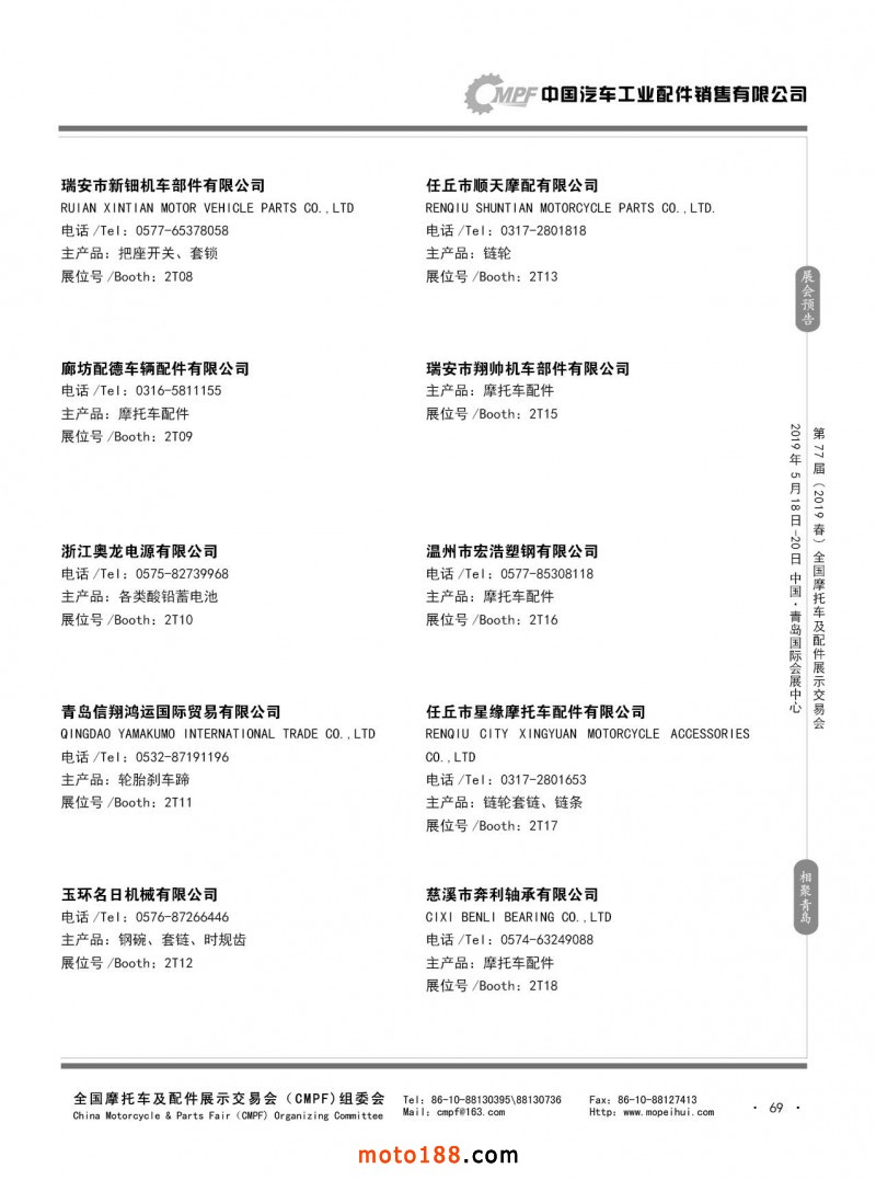 內(nèi)69 第76屆(2018秋)全國摩托車及配件展示交易會-廣州站參展企業(yè)信息