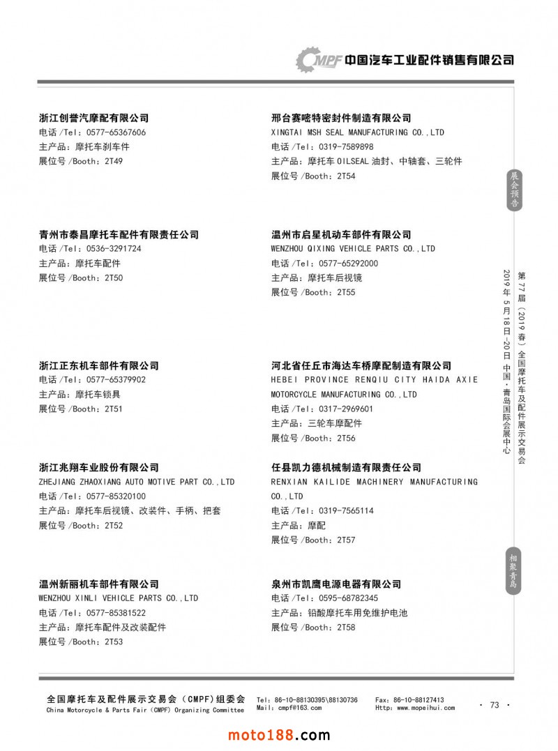 內(nèi)73 第76屆(2018秋)全國(guó)摩托車及配件展示交易會(huì)-廣州站參展企業(yè)信息