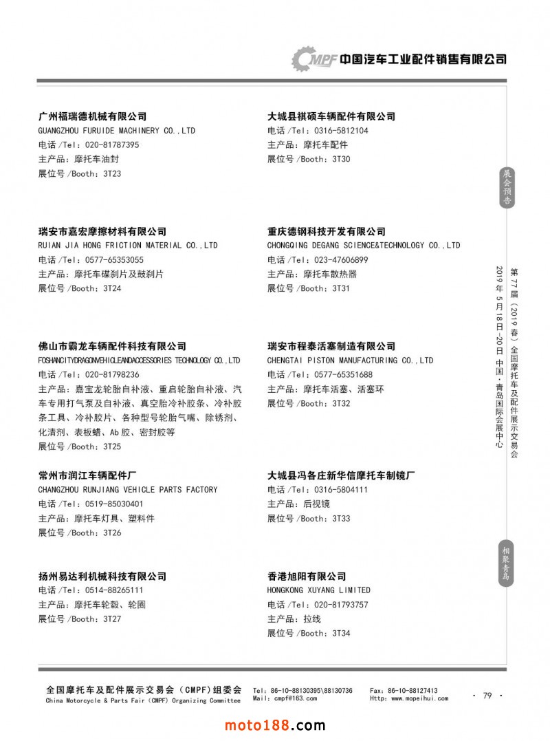內(nèi)79 第76屆(2018秋)全國(guó)摩托車(chē)及配件展示交易會(huì)-廣州站參展企業(yè)信息