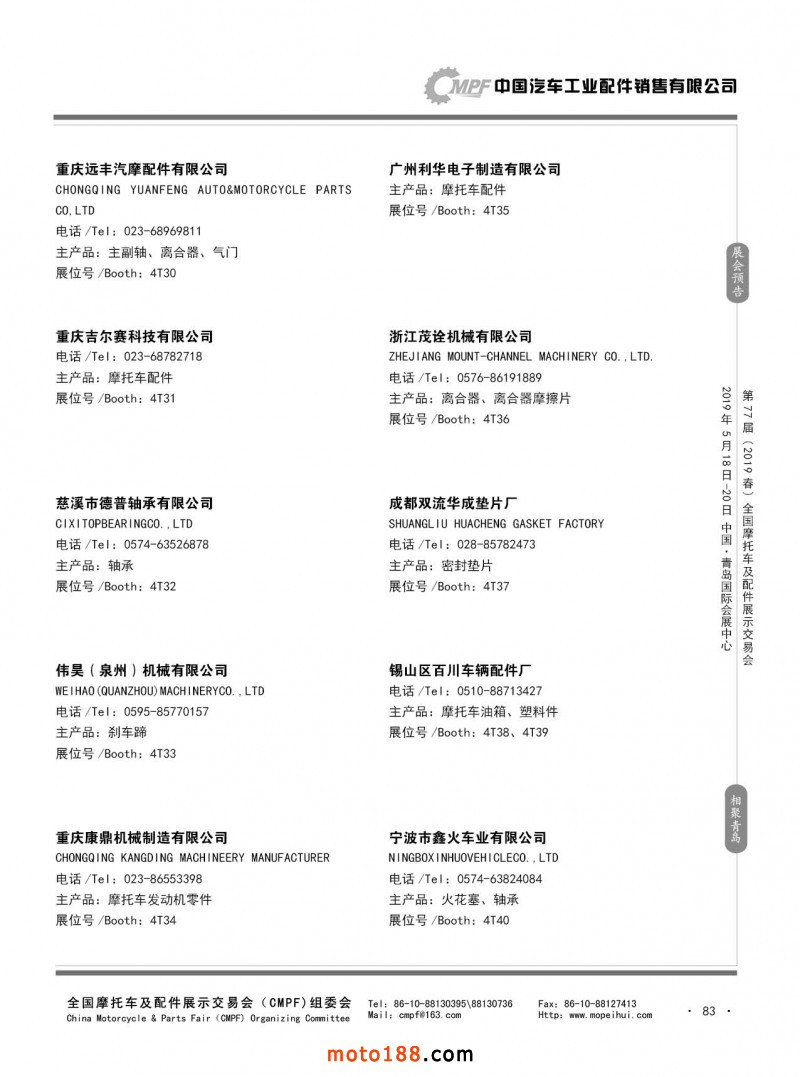 內(nèi)83 第76屆(2018秋)全國(guó)摩托車及配件展示交易會(huì)-廣州站參展企業(yè)信息