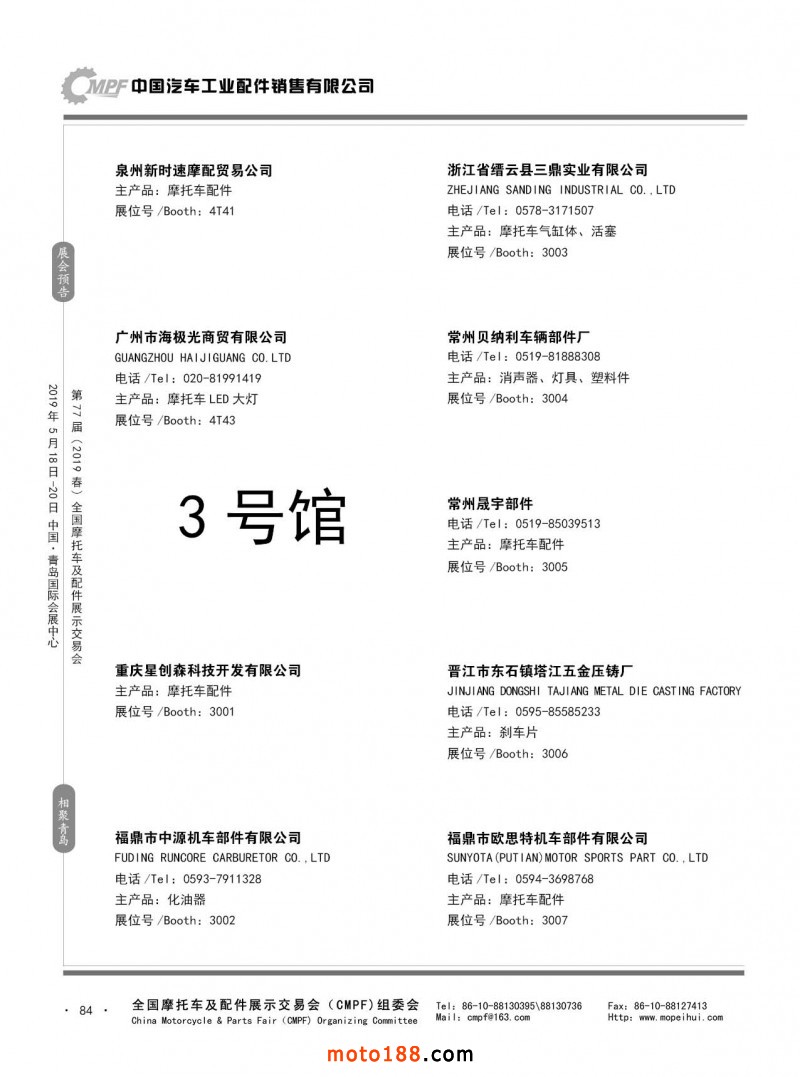 內84 第76屆(2018秋)全國摩托車及配件展示交易會-廣州站參展企業信息