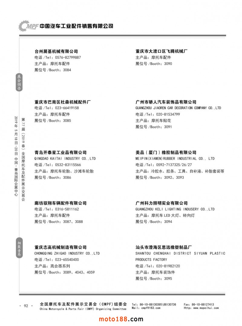 內92 第76屆(2018秋)全國摩托車及配件展示交易會-廣州站參展企業信息